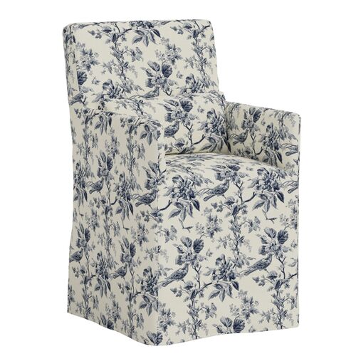 Lindy Slipcover Dining Arm Chair, Michigan Bird Toile