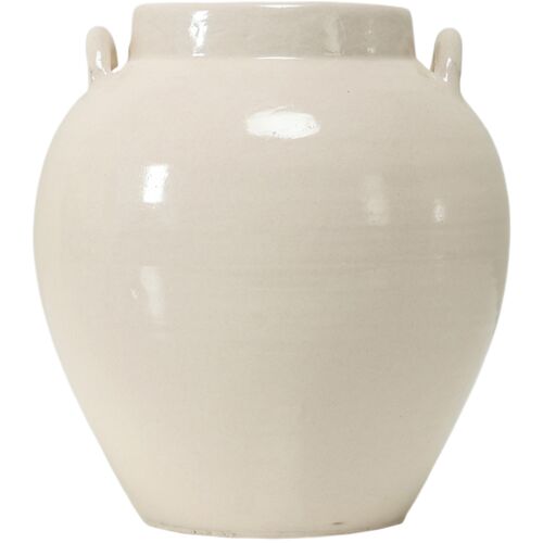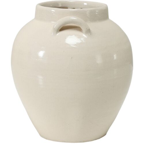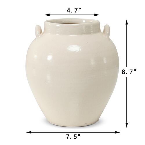 13"H Off White Porcelain Vase with Two Handles