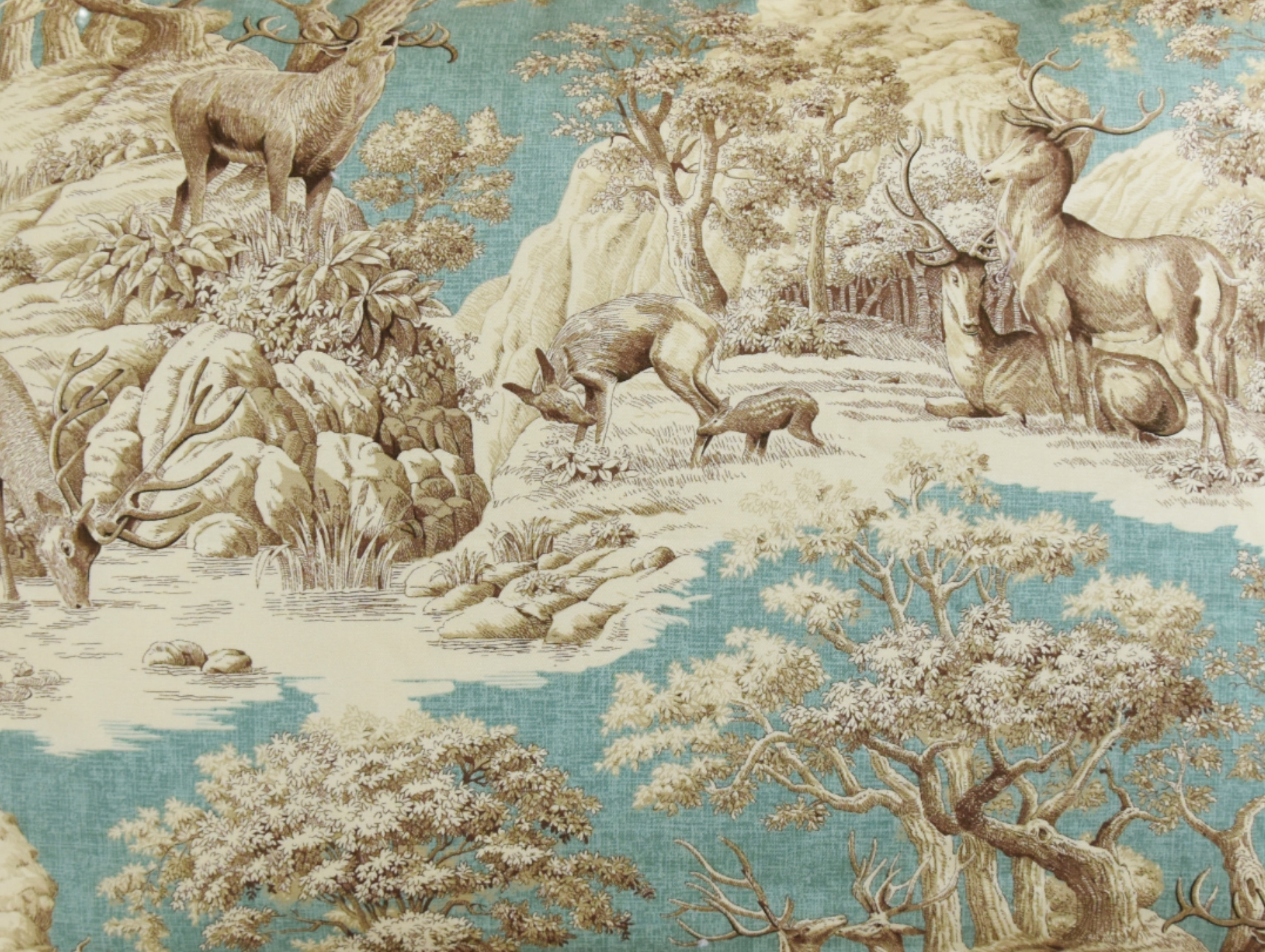 Aqua Toile Deer Woodland Stream Pillow is currently out of stock