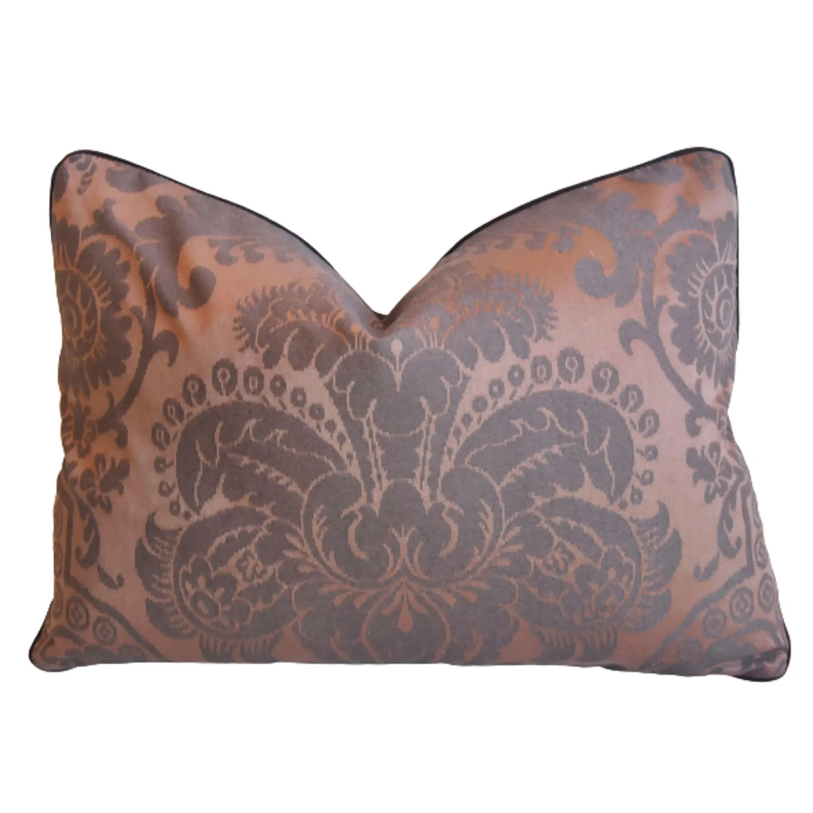 Lee Jofa Brown Plum Silk Damask Pillow