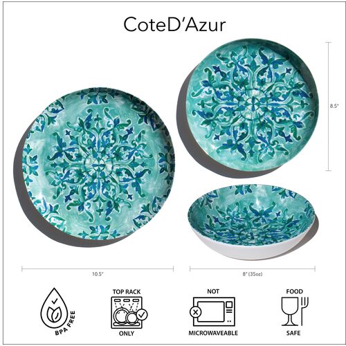 S/6 Côte D'Azur Indoor/Outdoor Melamine Dinner Plates, Teal