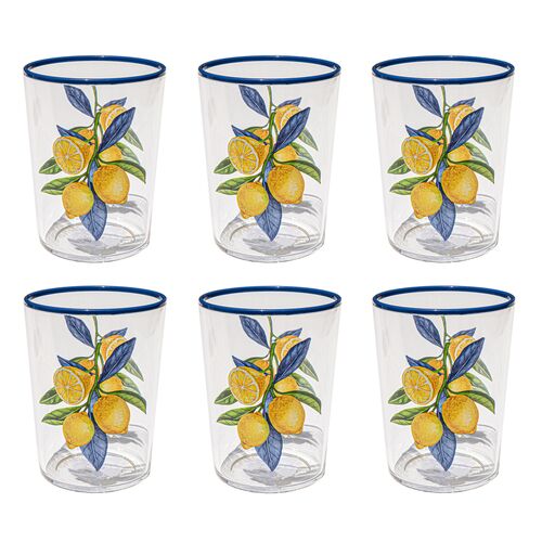 S/6 Montana Indoor/Outdoor Acrylic Heavy Base Drinking Glasses, Clear