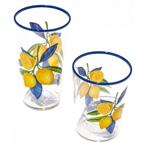 S/4 Midsummer Indoor/Outdoor Acrylic Floral Drinking Glasses, Multicolor