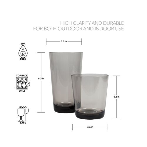 S/6 Montana Indoor/Outdoor Acrylic Heavy Base Drinking Glasses, Clear