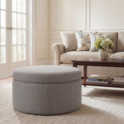 Whitford 36" Round Performance Linen-Blend Storage Ottoman